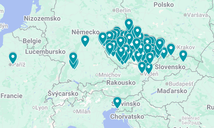 Koncertujeme nejen po celých Čechách a Moravě, ale i v zahraničí. Podívejte se na mapu odehraných koncertů.